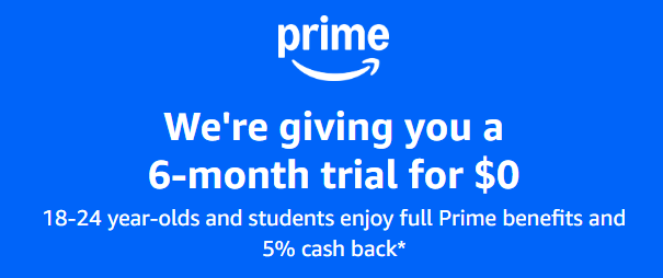 18–24 and students. This special offer gives you full access to all Prime benefits with no cost during the trial period.